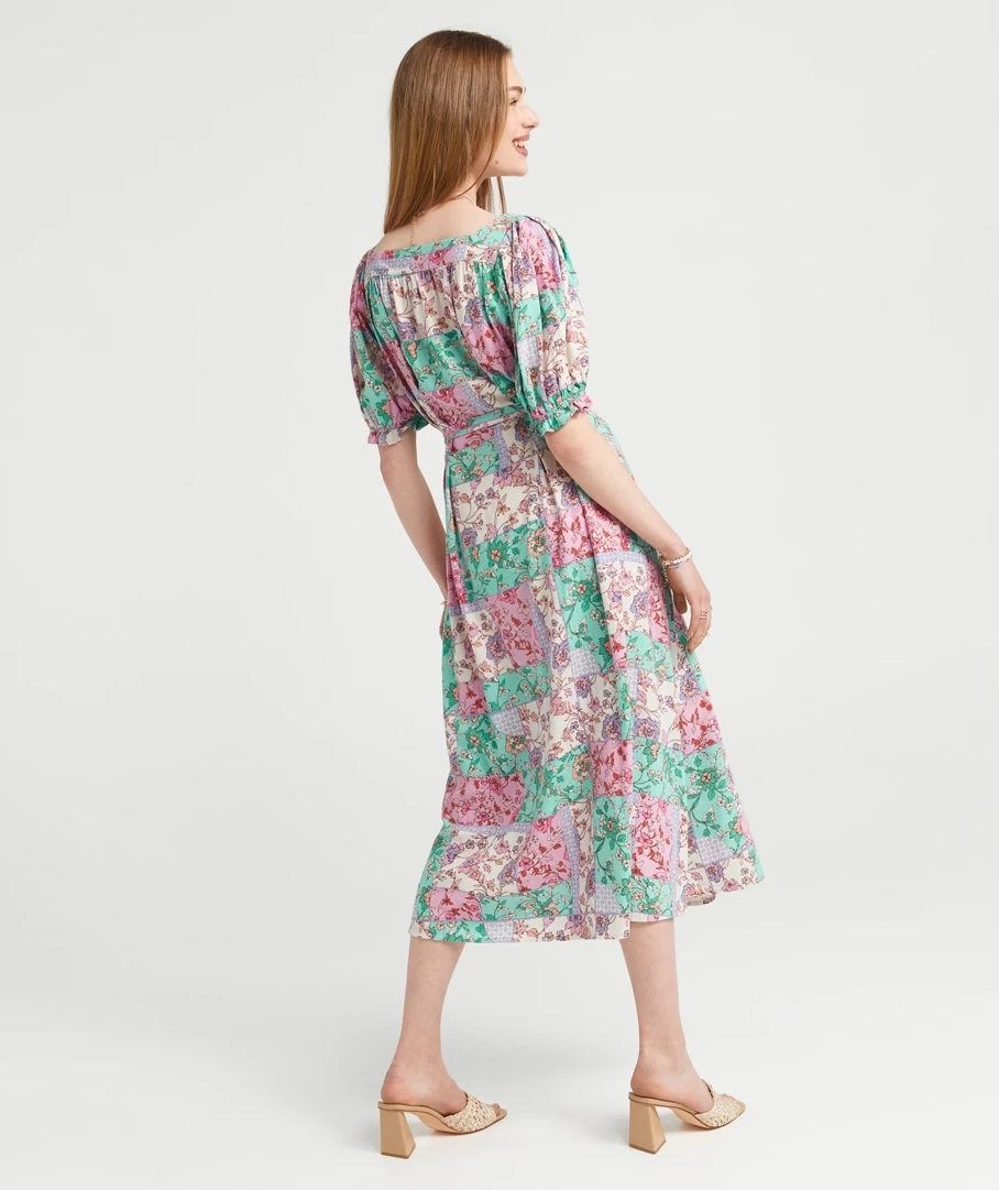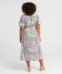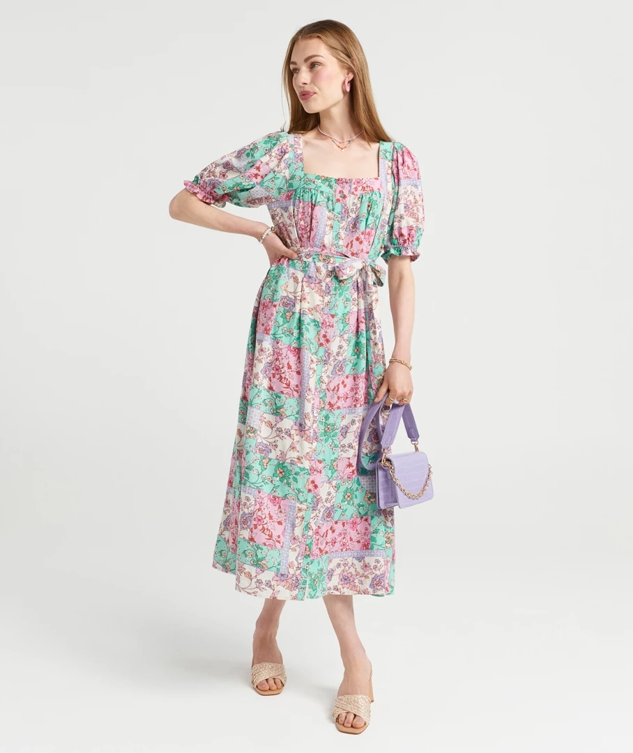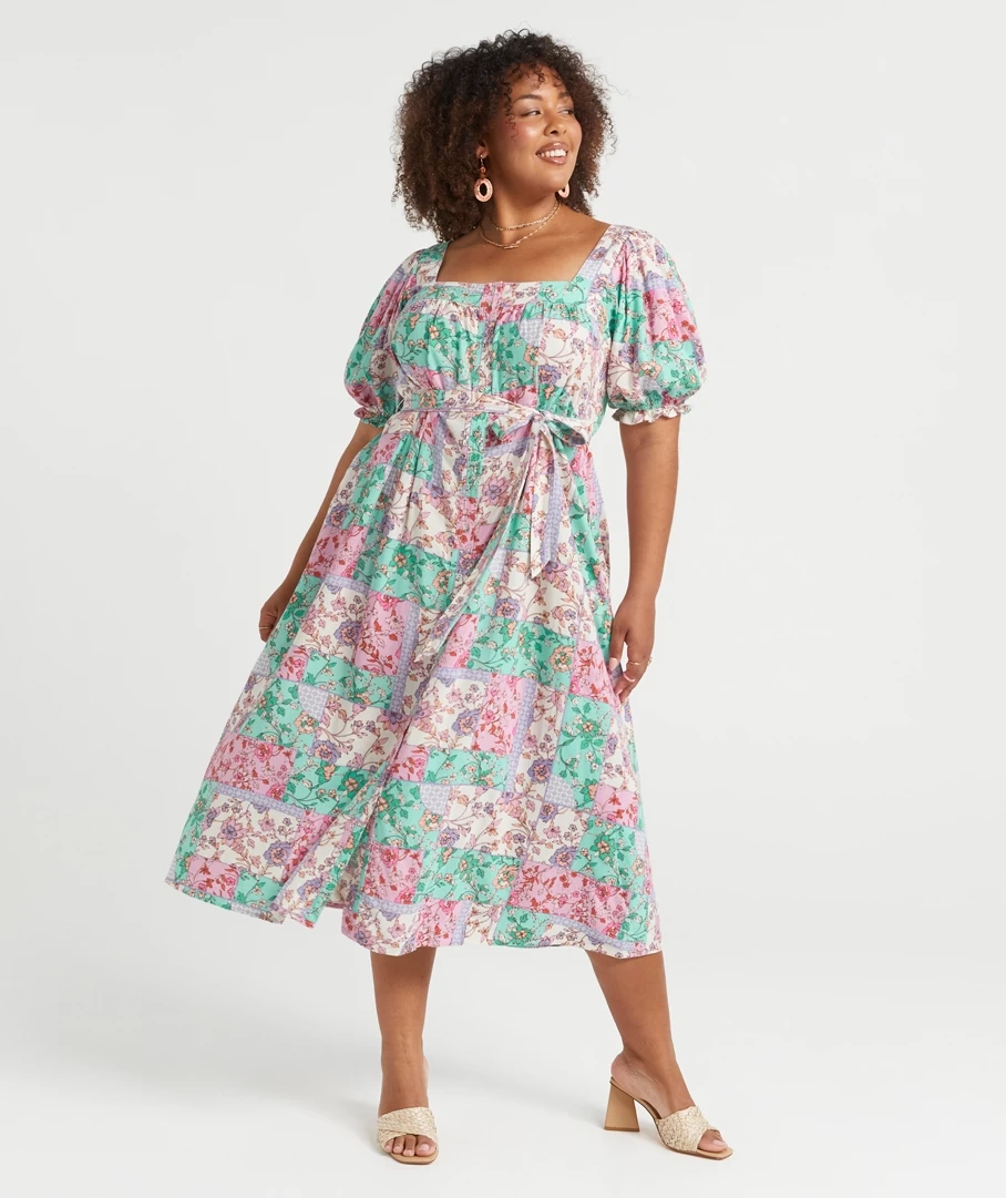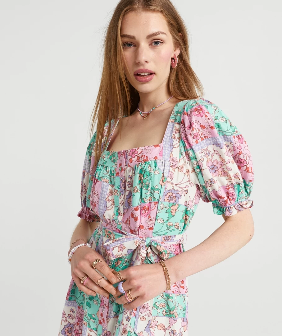 Its all about the print with the Peta Linen Printed Square Neck Midi Dress and we are in love! Made with a linen blend, midi length, square neckline, short puff sleeves, buttons down the front, fabric tie waist and pretty floral print on pastel colour blocks. Add some new mules and you are set.