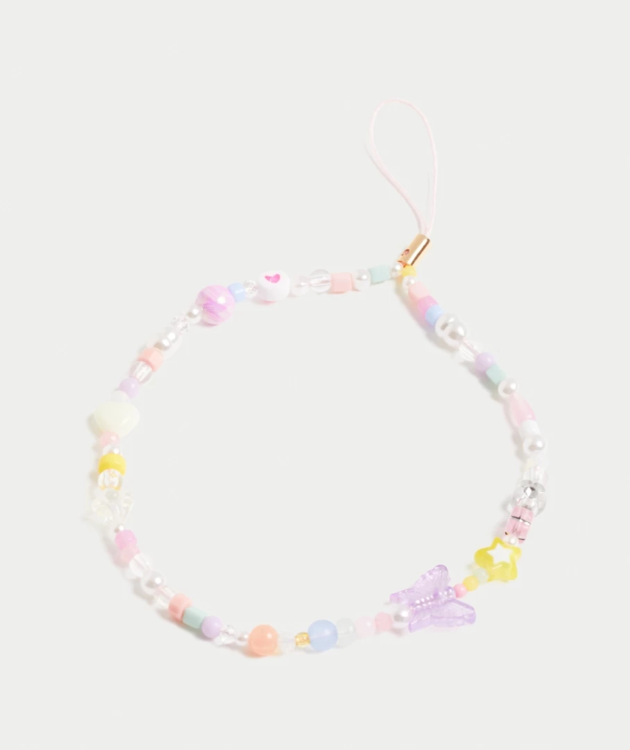 Add some fun to your phone with this Pretty Butterfly Pink Phone Strap. It features mixed beads all over, easy to attach and remove.