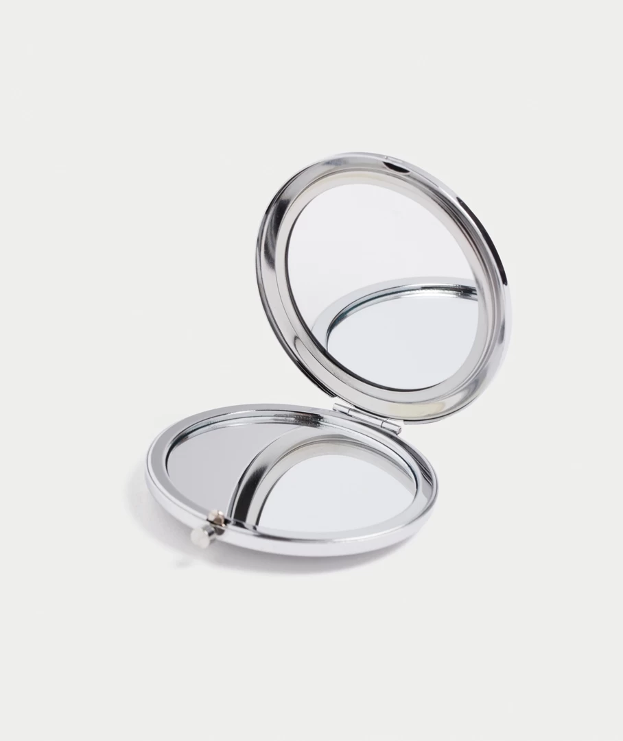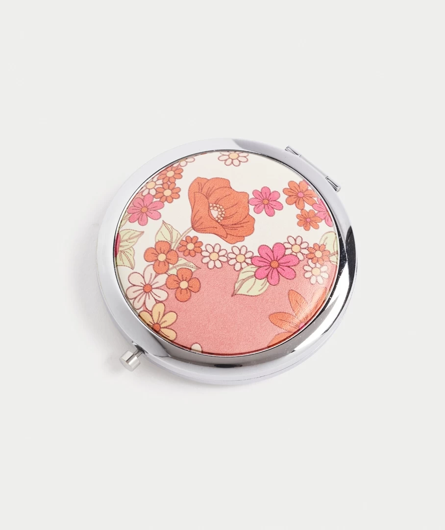 Pause for some reflection time. A compact mirror with PU printed front, the perfect purse companion for a quick touch-ups wherever life takes you.