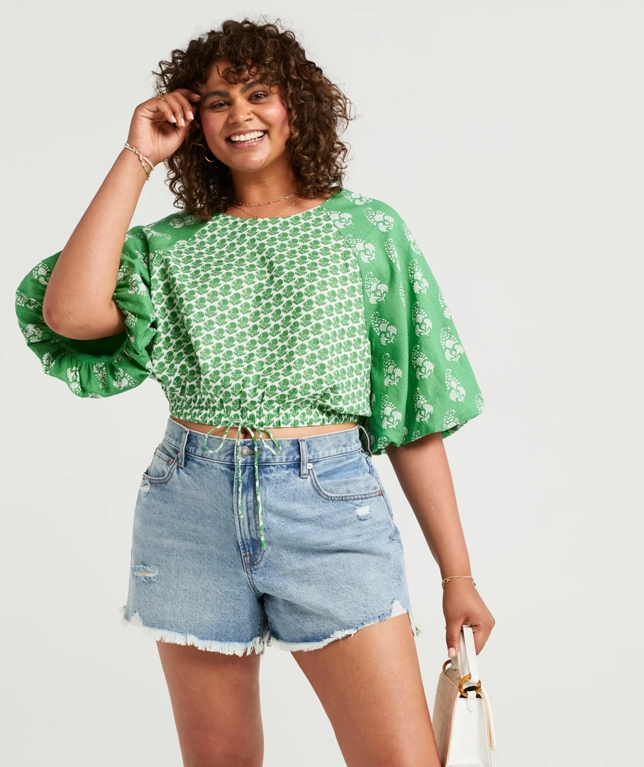Stun at your next event with the Remington Linen Puff Sleeve Print Top. Made with a linen blend, short puff sleeves, cropped length, tie waist detail and pretty print all over. Pair with denim bottoms to complete your look.