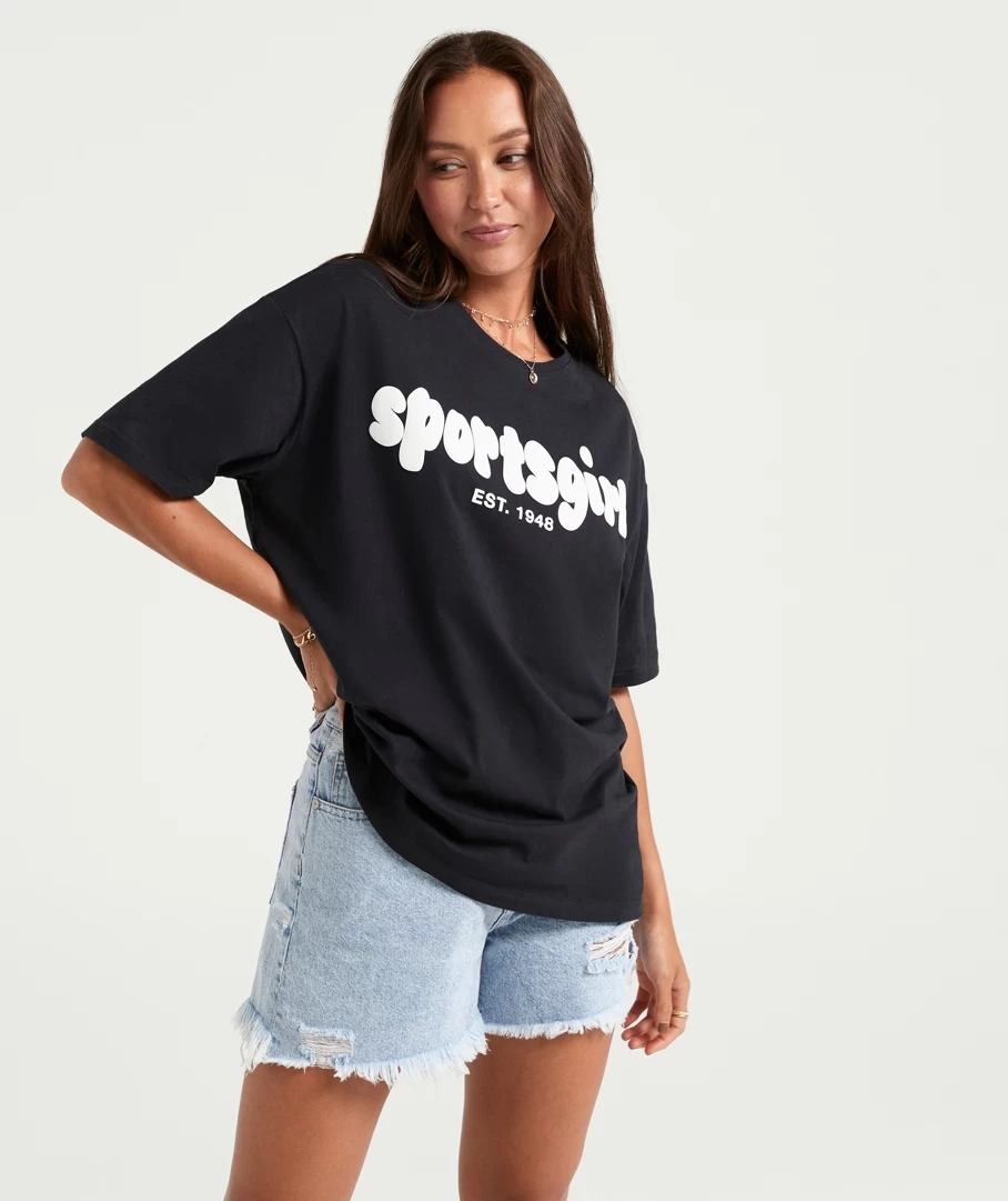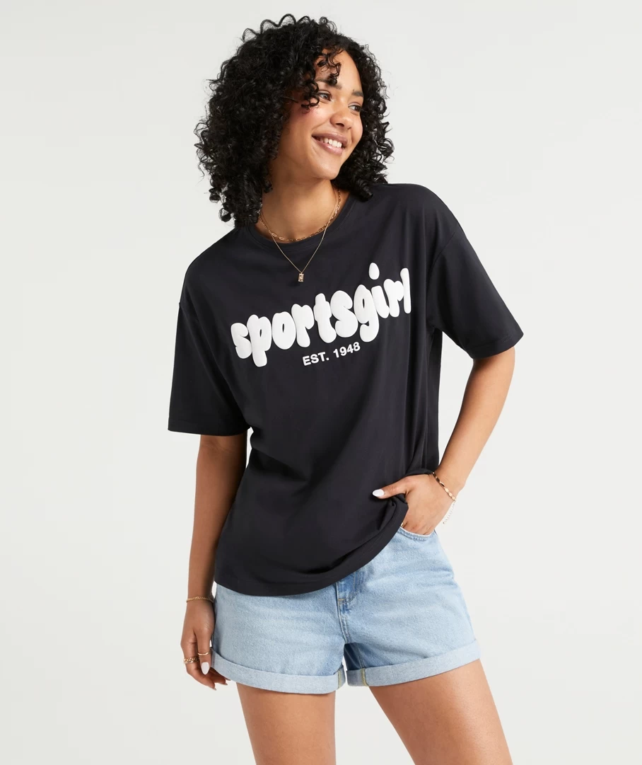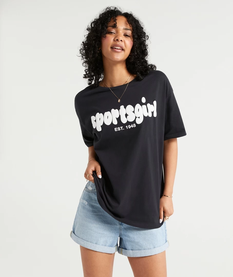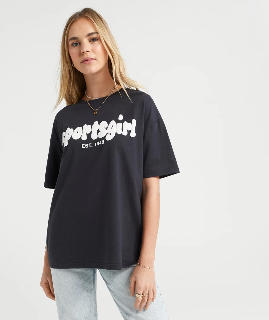 The Rewind Oversized Bubble Logo T-Shirt is one of our faves this season. Made with 100% cotton, full length, short sleeves and the Sportsgirl logo in bubble font on the front. Pair with your fave jeans to complete your look.