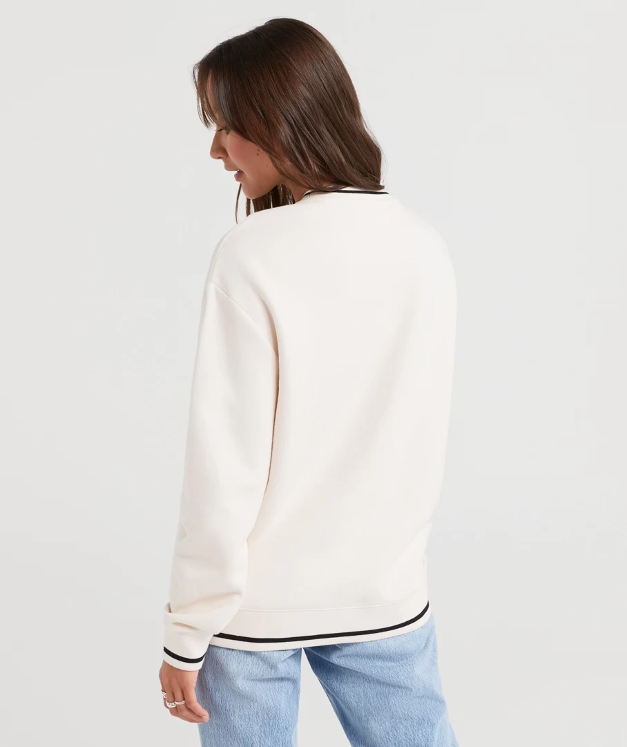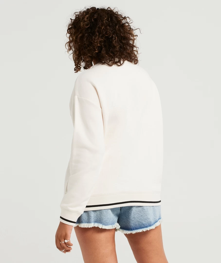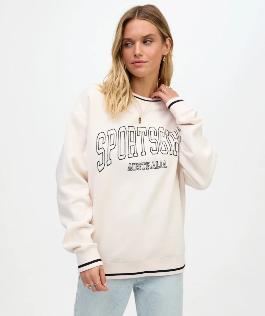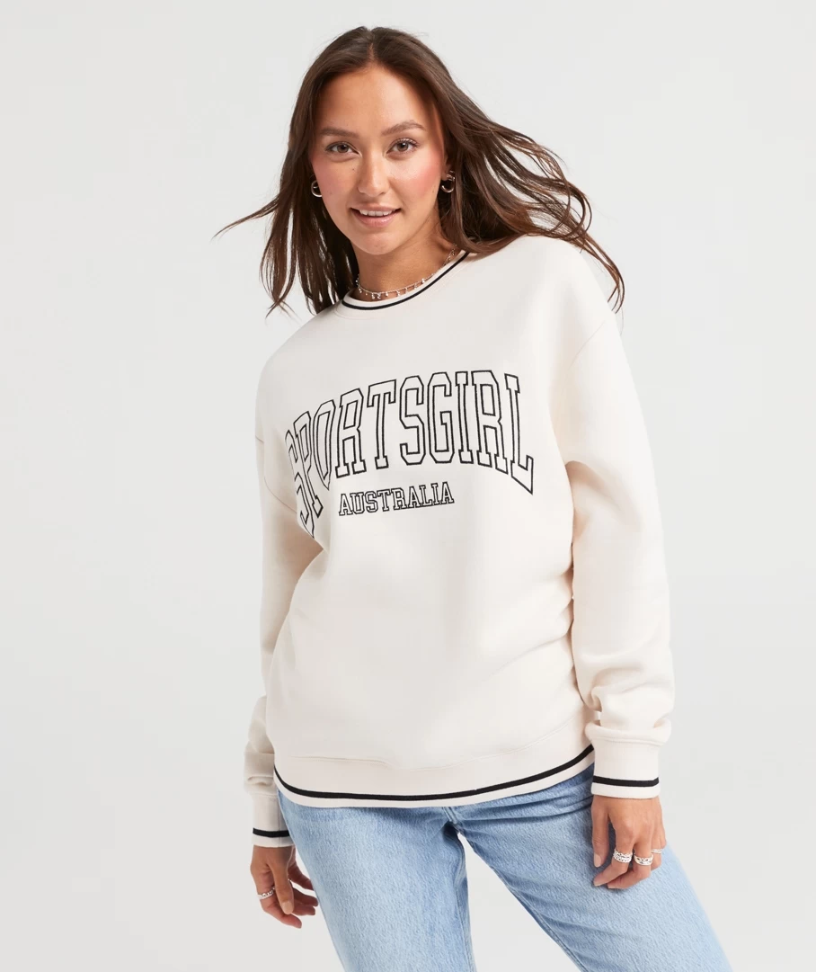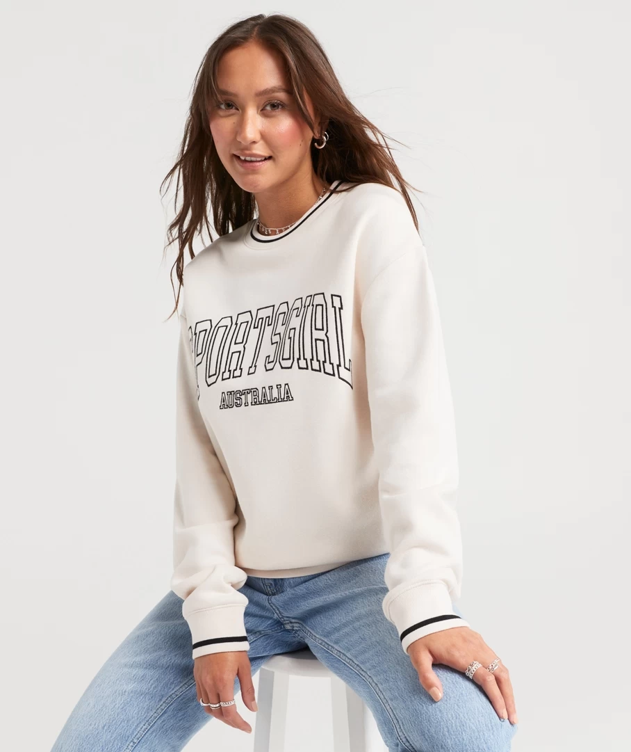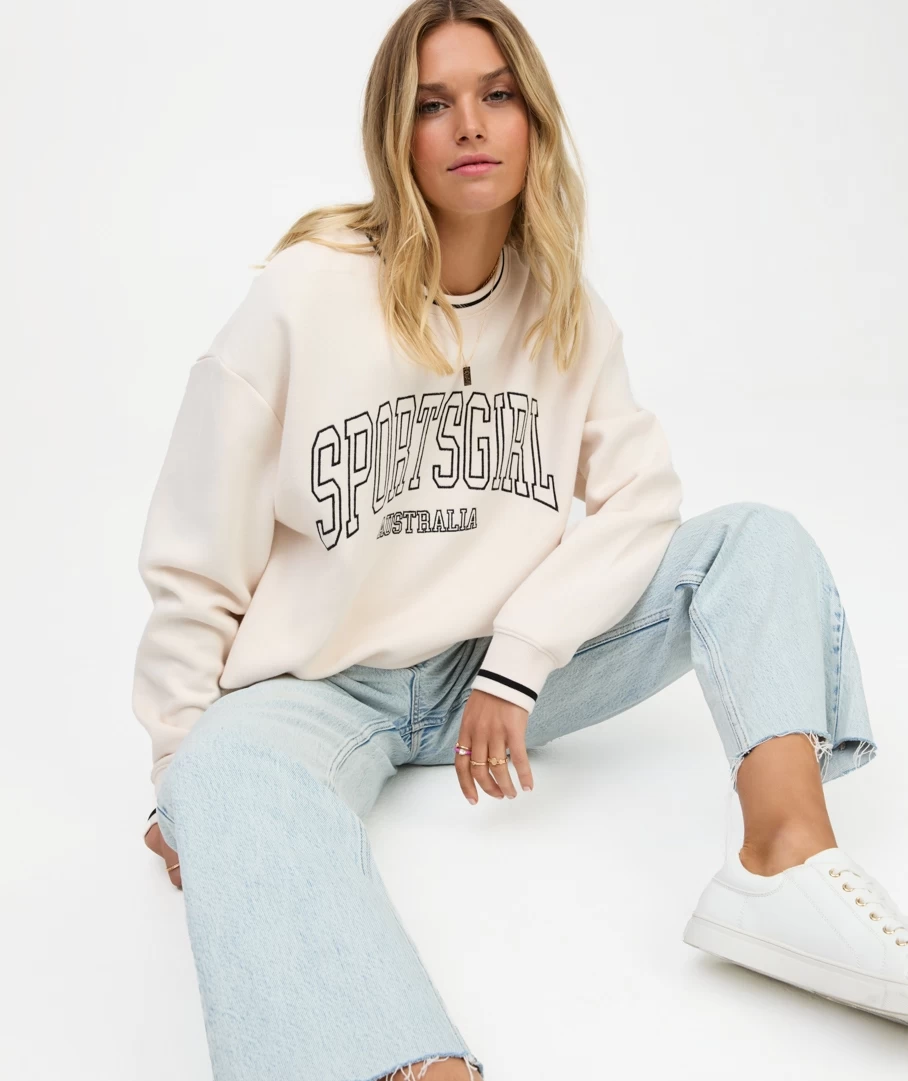 Its back! The Rewind Collegiate Oversized Sweat is back this season in the beloved colours of black and ecru. Made with a cotton blend, oversized fit, full length, crew neckline and the Sportsgirl logo printed on the front. Pair with denim bottoms or jeans for a casual look.