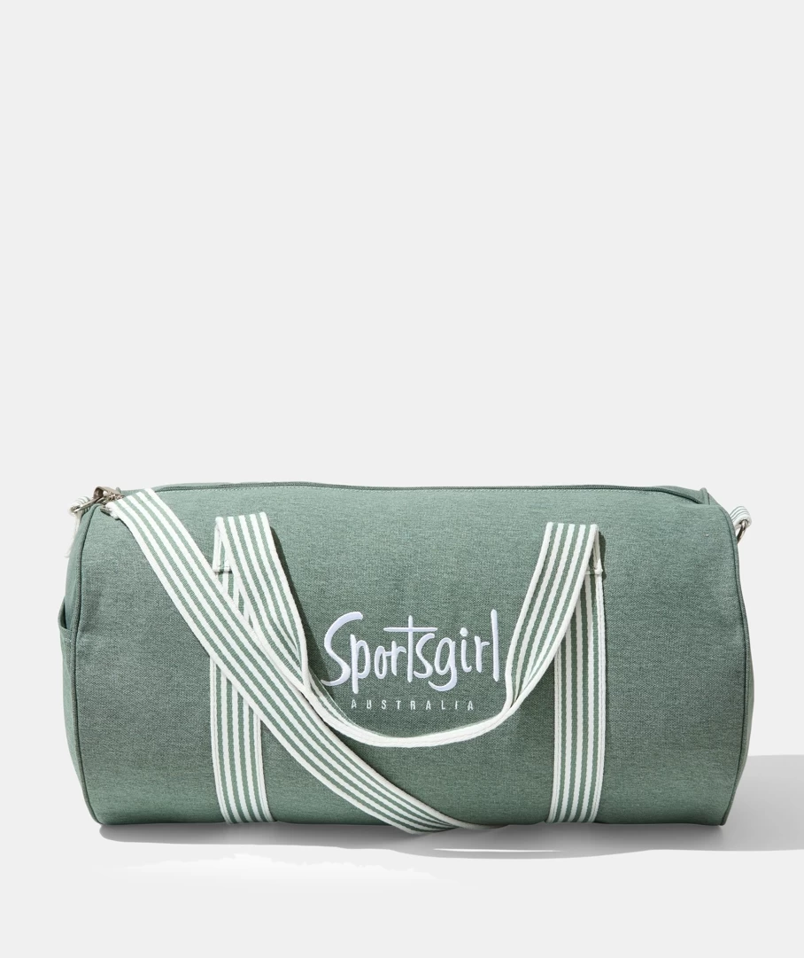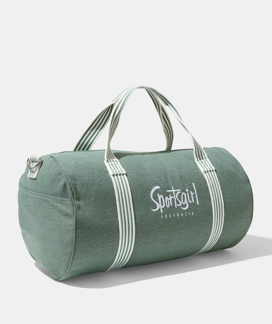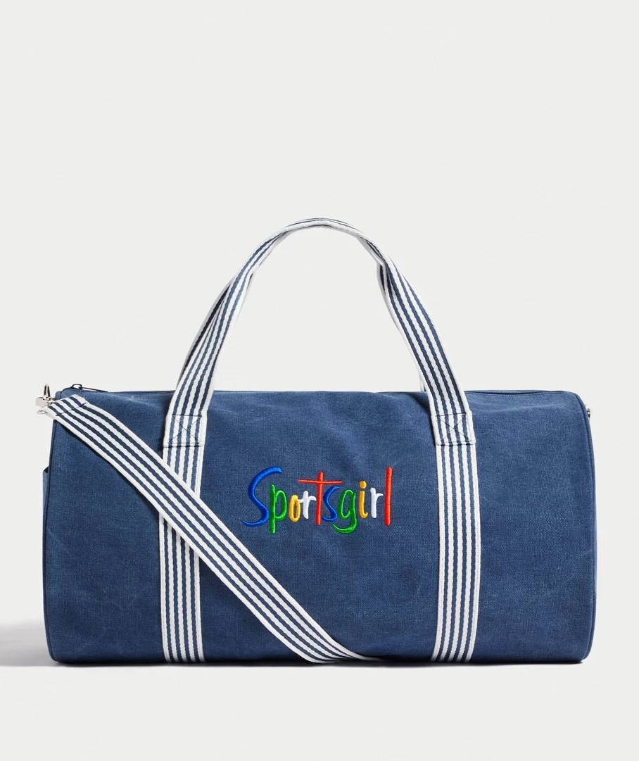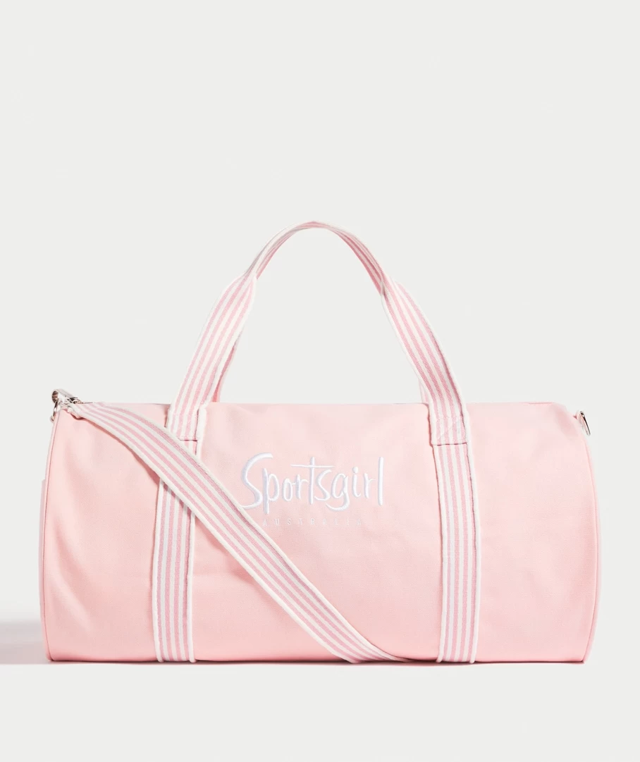 Pack in style with the iconic Sportsgirl Duffle Bag. Designed with a cotton blend, tunnel shape, two shoulder straps, a removable & adjustable crossbody strap, side pockets, zip closure and the Sportsgirl logo printed on the front. Carry all your goods in this spacious and durable duffle bag.