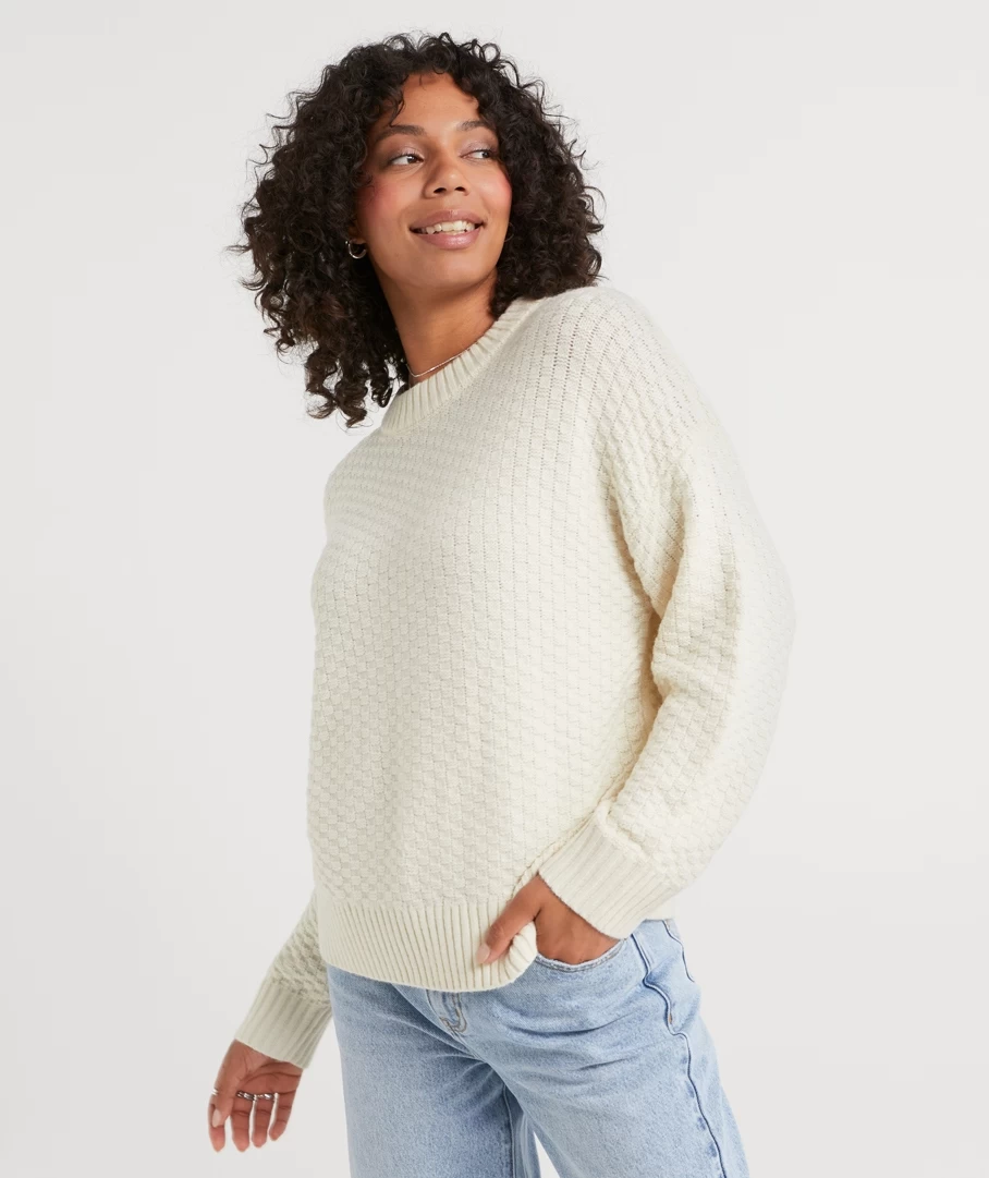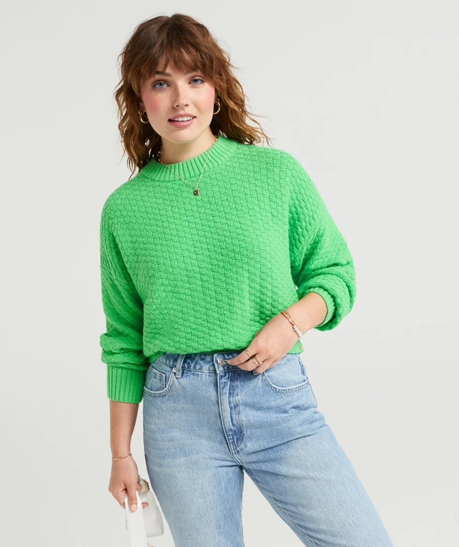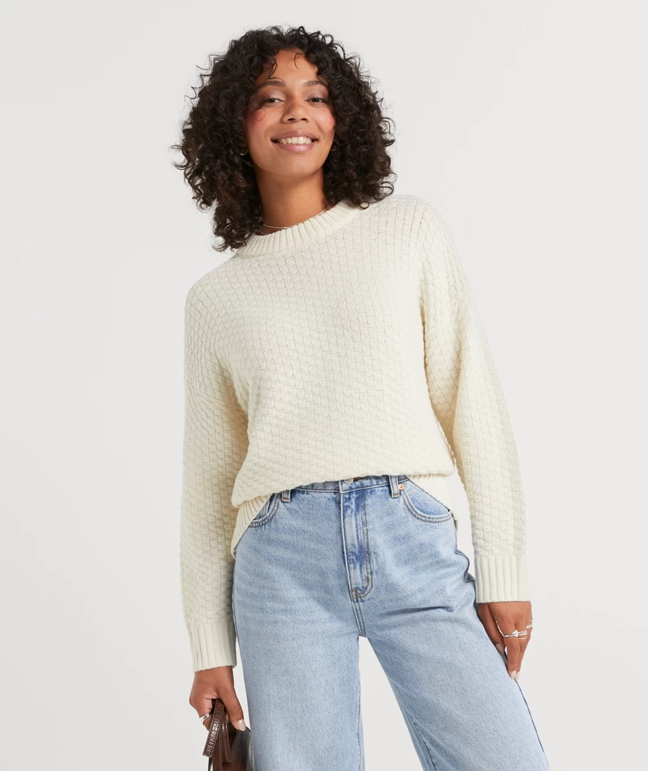 Add to your essential knit collection with the Roxanne Waffle Knit Sweater. A textured waffle knit, made from a blend of fabrics. Featuring a high neck, full length sleeves and full length body. Perfect for layering or pairing with your fave jeans!