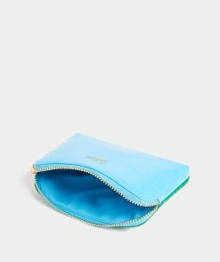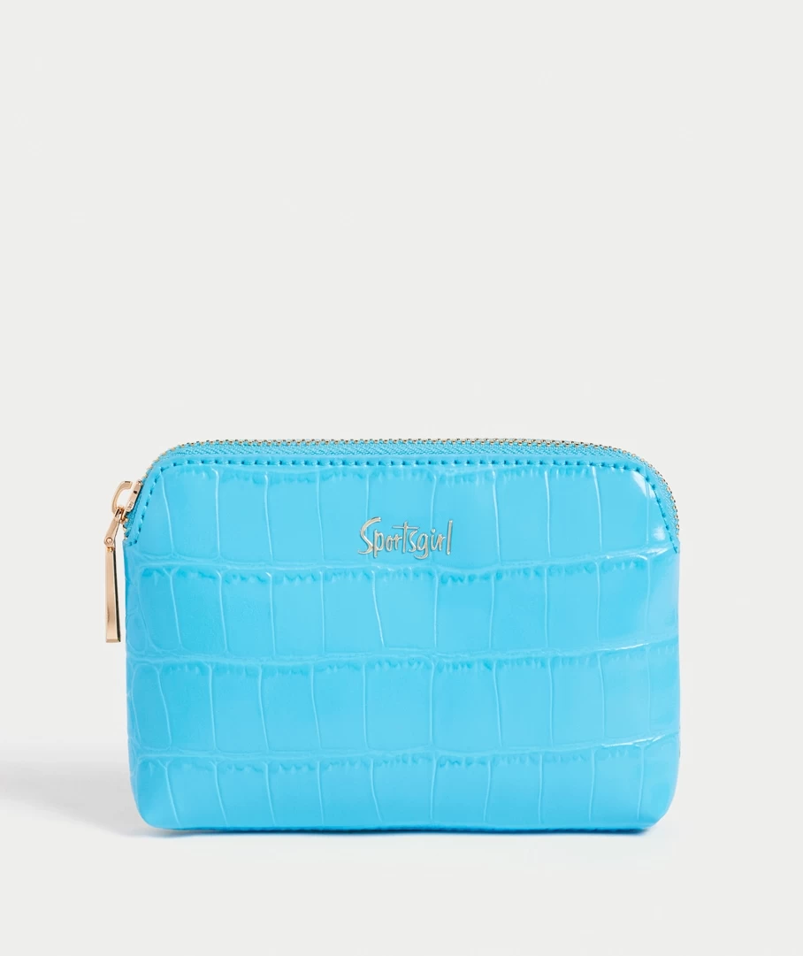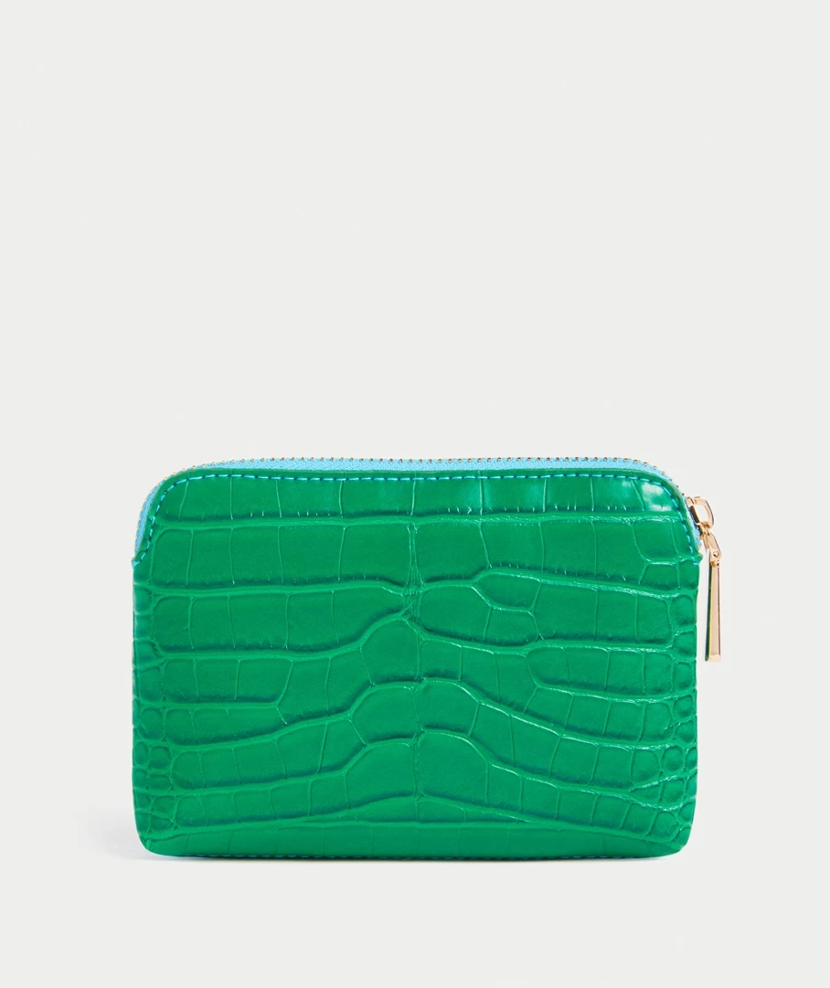 With a faux croc leather look all over, this purse is a must have! It features a metal zip detail to keep your goods safe in this easy to carry, convenient pouch. It has two contrast colours, blue on the front and green on the back.