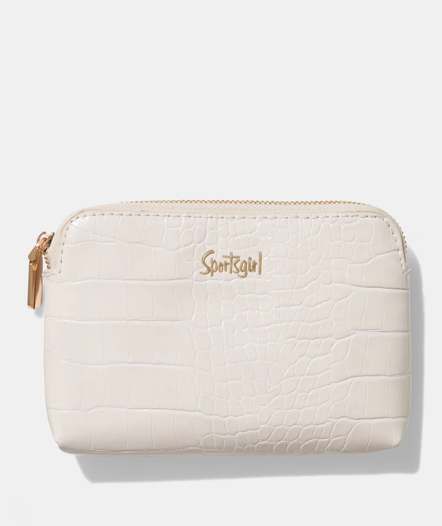 With a faux croc leather look all over, this purse is a must have! It features a metal zip detail to keep your goods safe in this easy to carry, convenient pouch.