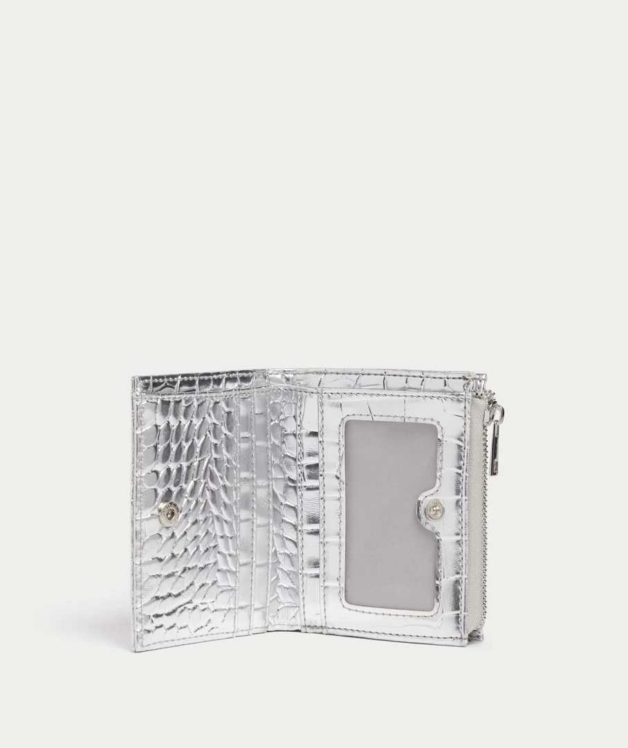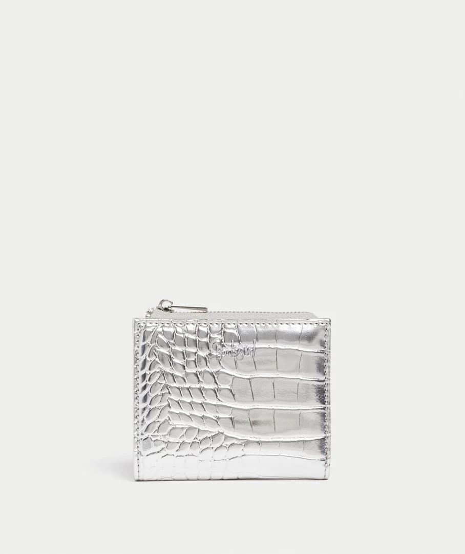Your new go to wallet, the SG Collection Mellatic Mini Wallet. Made with a croc textured fabric, convenient shape and zip closure with a coin compartment.