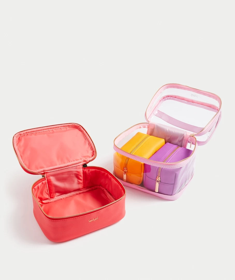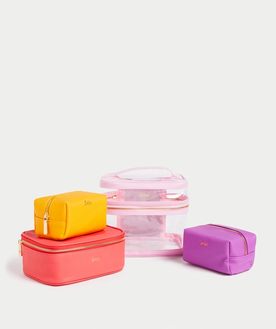 Pack in style with our new SG collection beauty bag range. The PU 4-in-1 Makeup Bag features 4 beauty bags all in different colours and shapes. Store all your make up, brushes or skin care faves in this ultimate. It is easy to pack for your next trip away and perfect to store neatly at home.