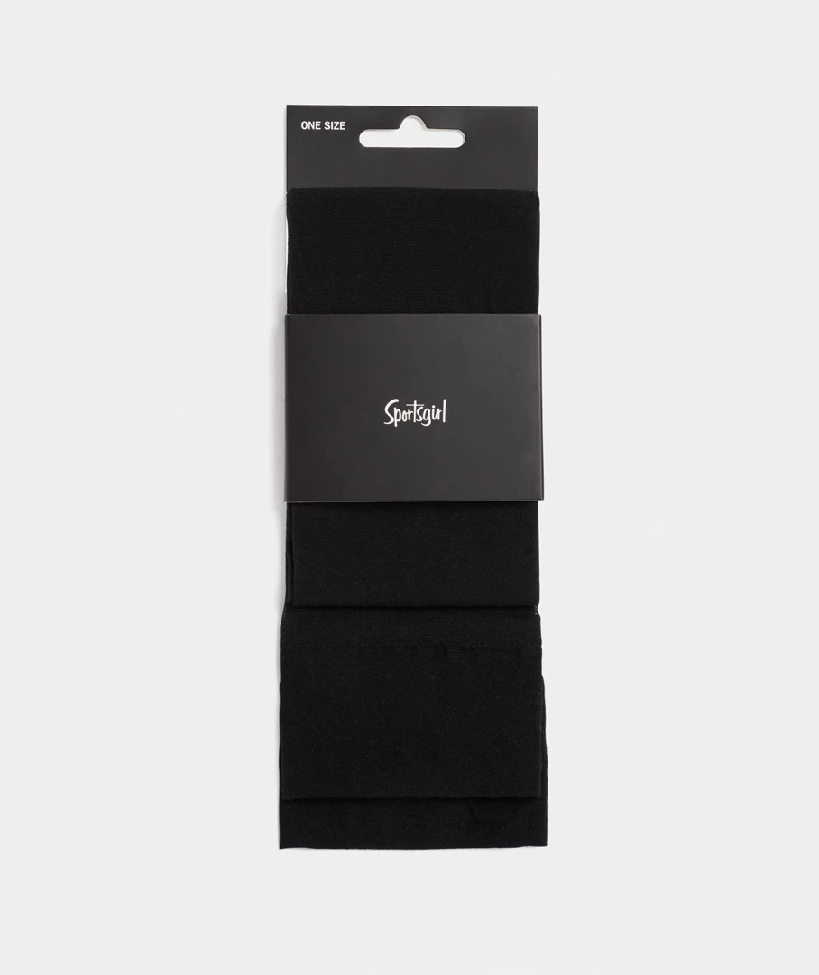 Elevate your look with the Sheer Knee Socks. They feature a sheer sock with a black band at a knee height. Style them with loafers for the ultimate outfit.