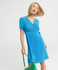 Be ready for your next event with the Shona Plisse Pleated Wrap Mini Dress. Made with a lightweight fabric, crinkle fabric, mini length, wrap detail and short sleeves. Pair with a pretty bag to complete your look.