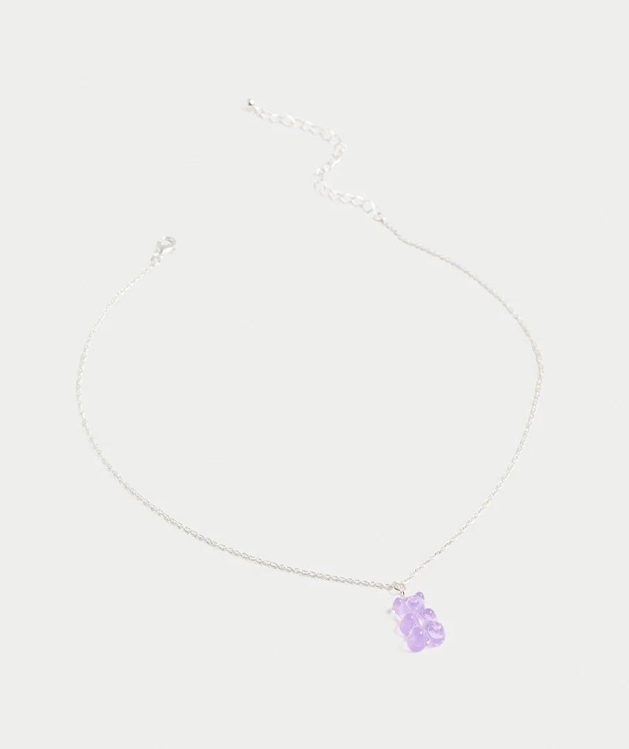It is about colour with the Silver Bear Pendant Necklace. This necklace features a purple bear pendant on fine chain with clasp closure.