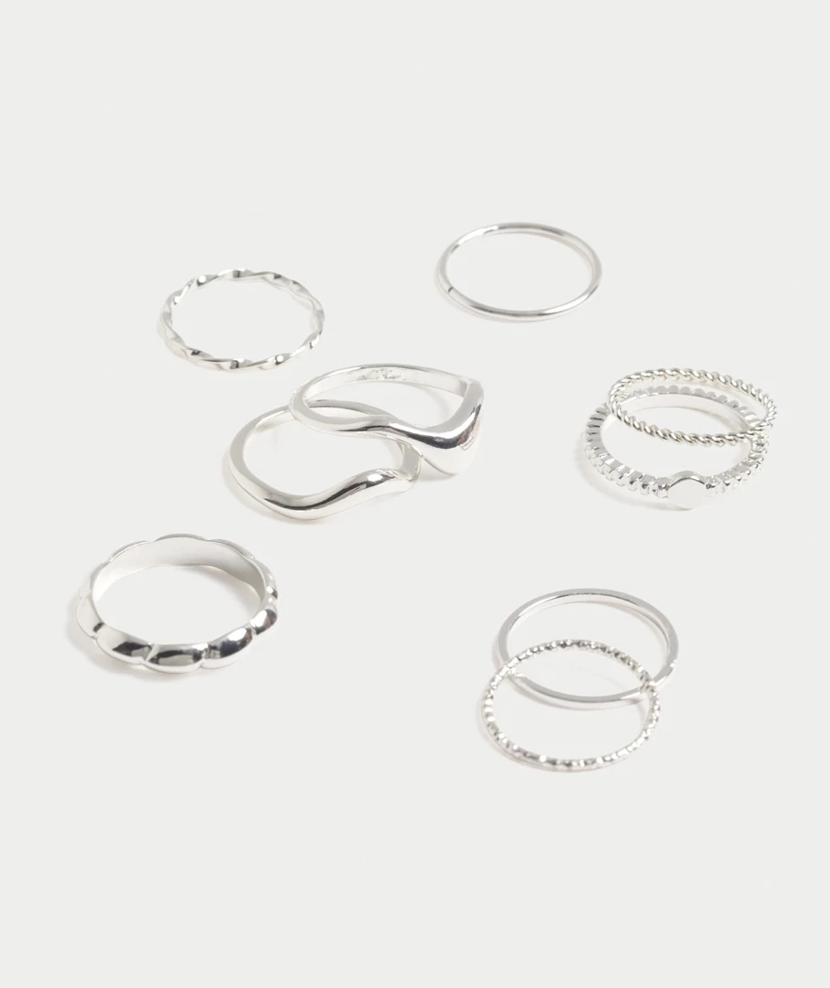 We are all about layers this season and that includes our fingers. Wear them all or only a few to elevate your look. The Silver Classic Ring Pack features silver coloured rings, all with simple designs.