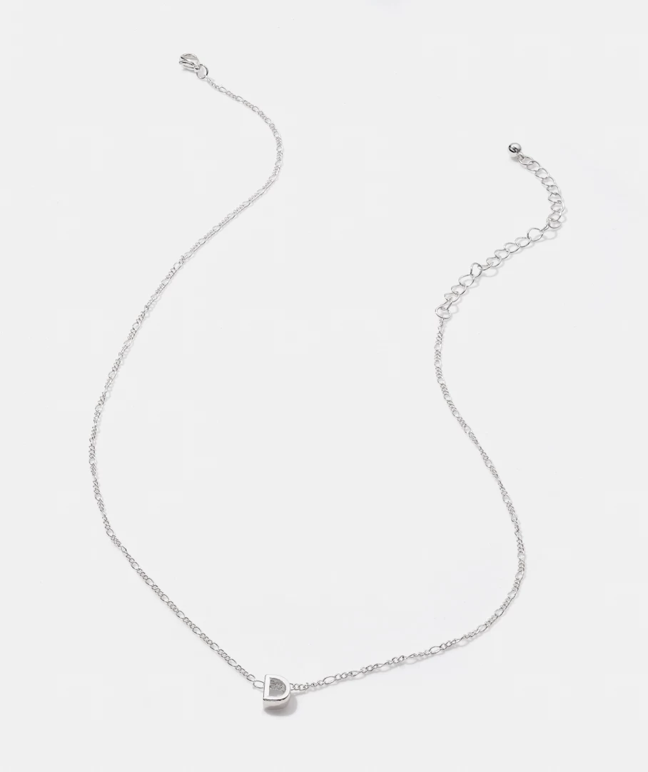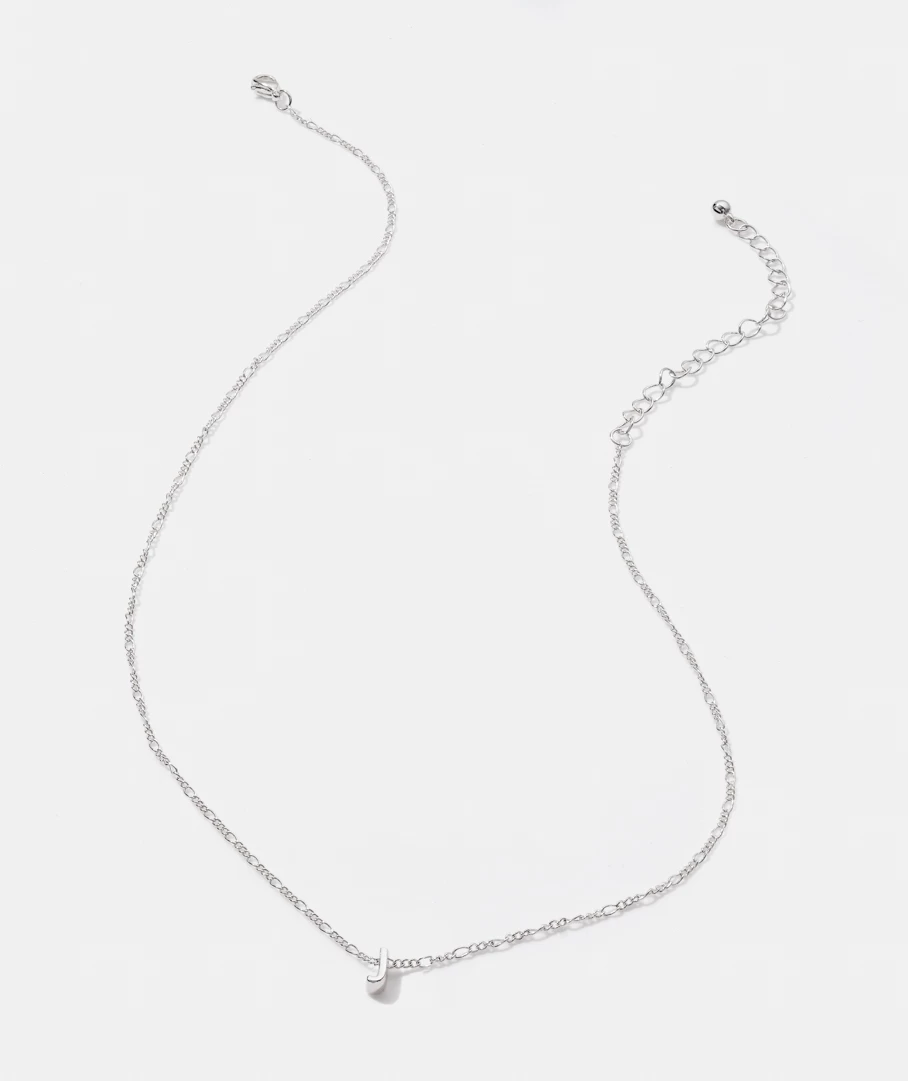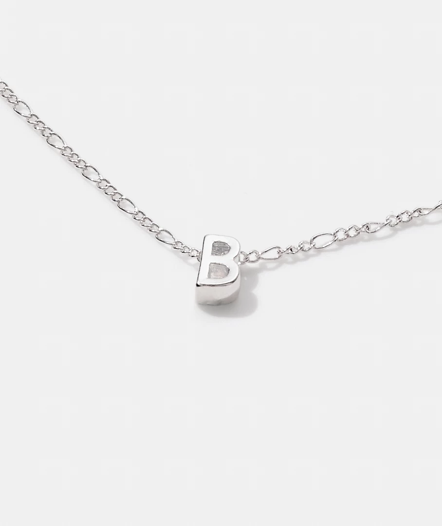 The Silver Petite Letter Necklace features a silver coloured chain with a small block print letter as a pendant. Buy for yourself or as a gift to a loved one!