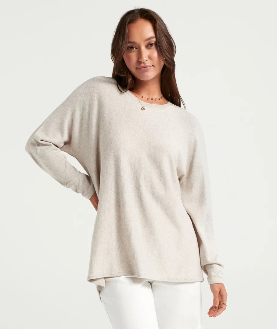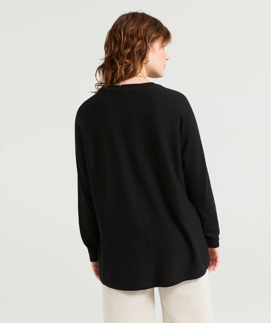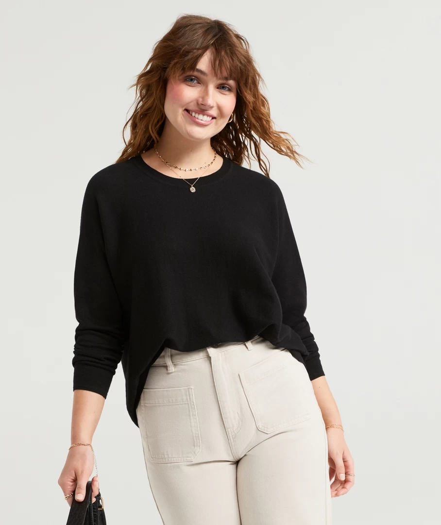 Lets talk staple items with the Simone Essential Knit Sweater. Made with a cotton blend, full length, high neckline, soft texture and loose fit. Add a crossbody bag for a casual look.