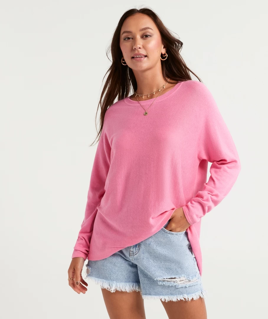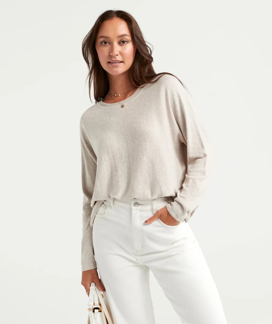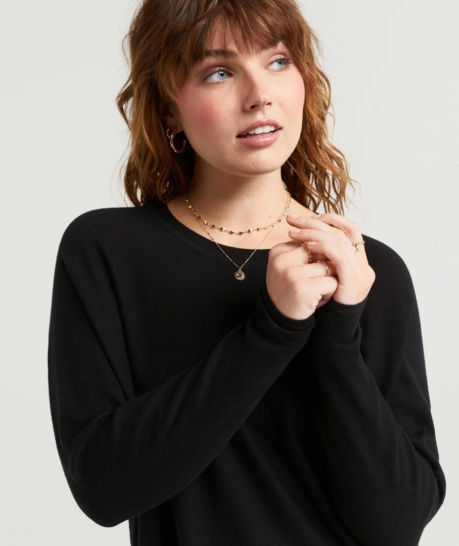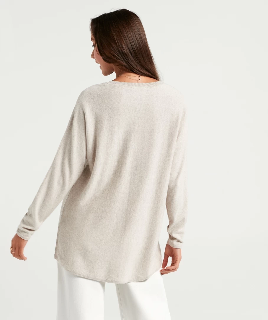 Lets talk staple items with the Simone Essential Knit Sweater. Made with a cotton blend, full length, high neckline, soft texture and loose fit. Add a crossbody bag for a casual look.