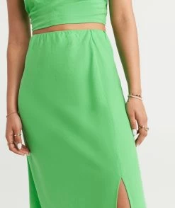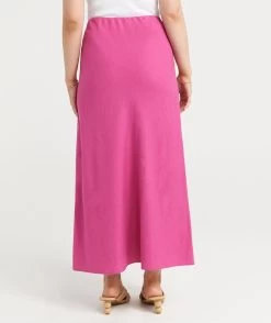 Whether you are off to brunch with the girls or a family event, the Skye Linen Slip Midi Skirt is the perfect pick. Made with a linen blend, midi length, front split, elastic waist band, pull on fit and block colours. The black colour features external white stitching. Add some new slides and you are set.
