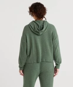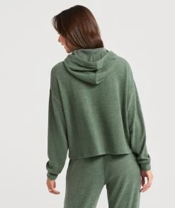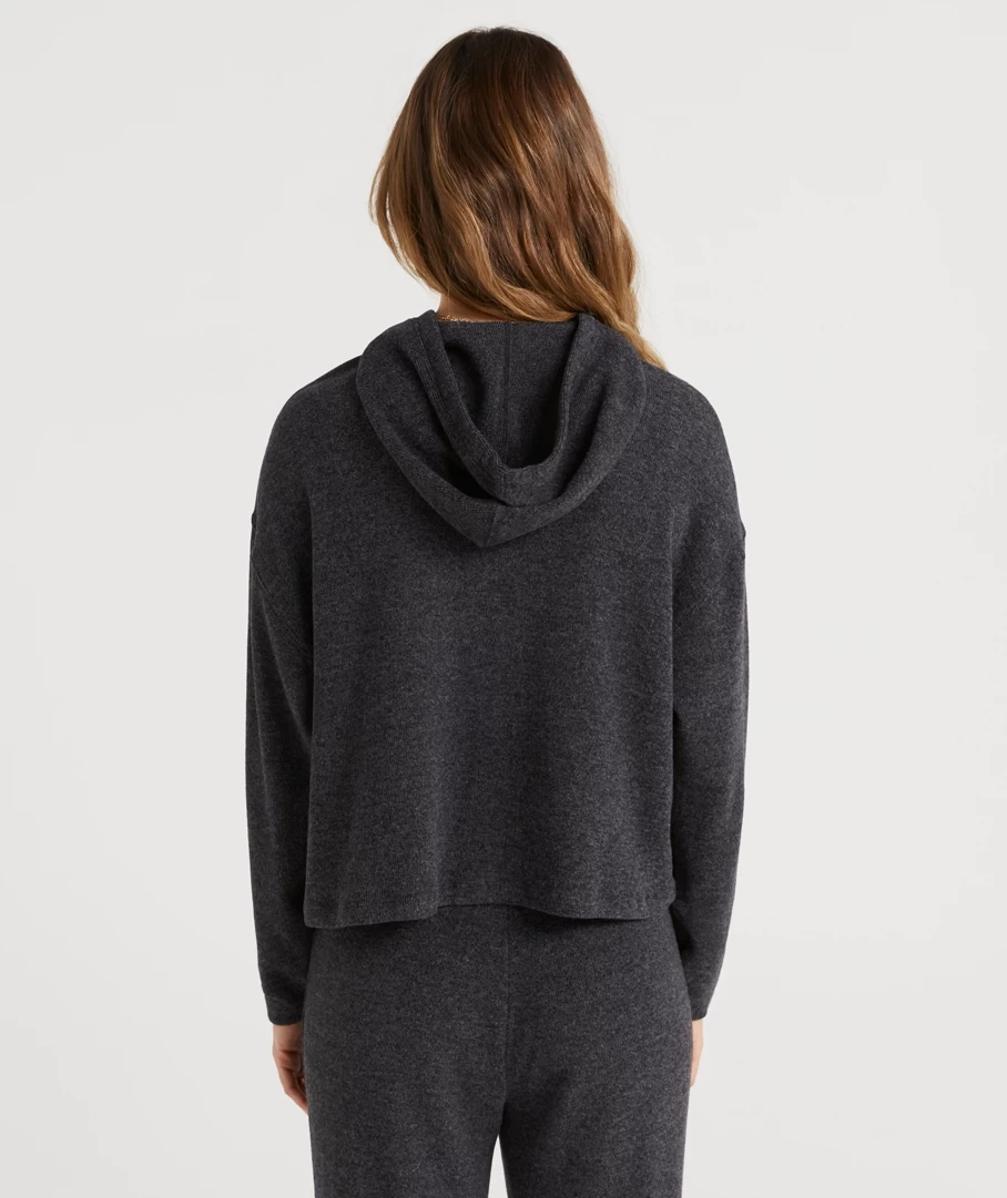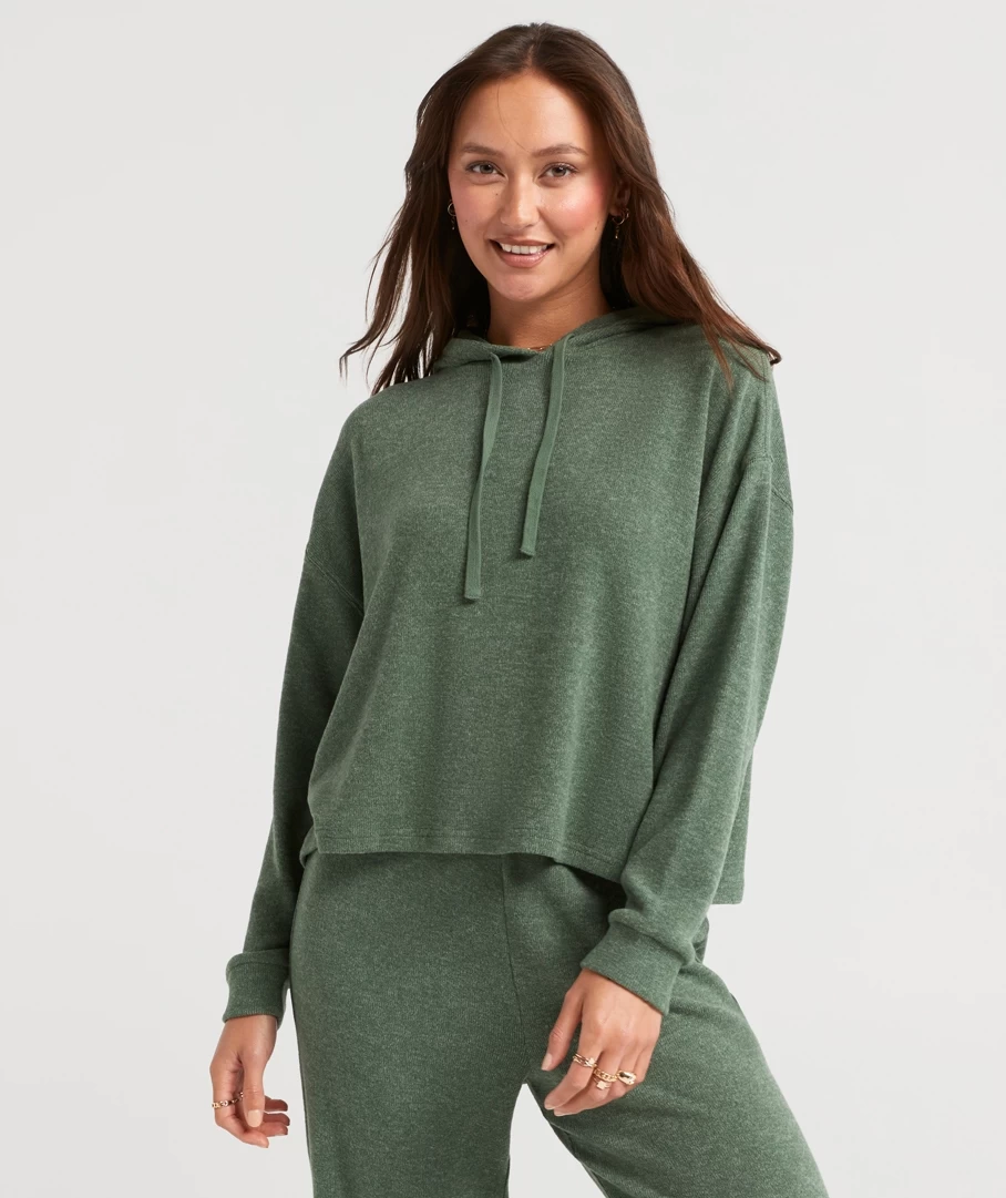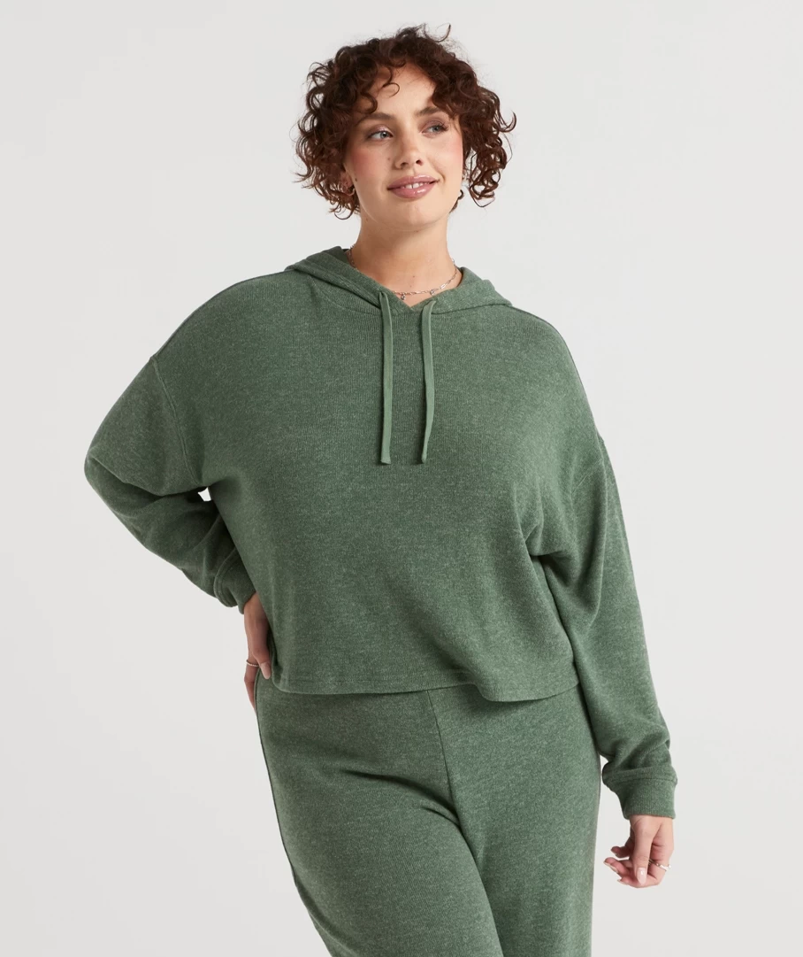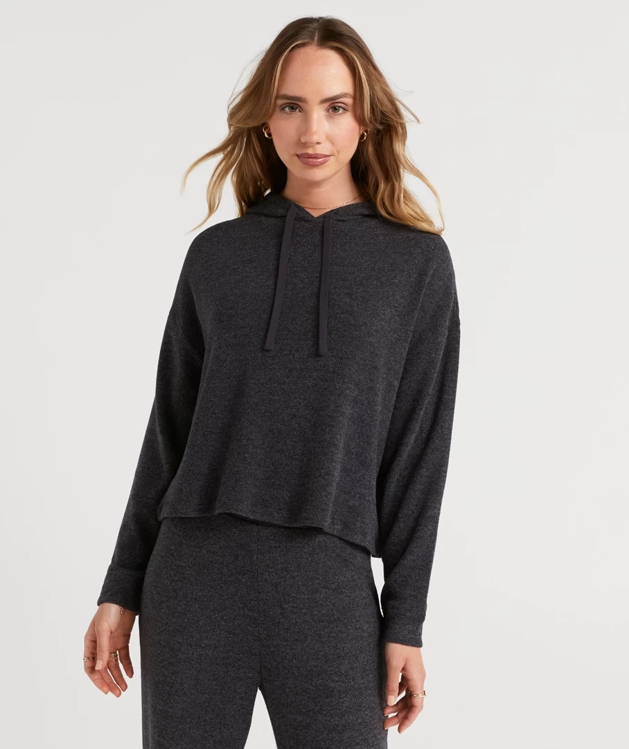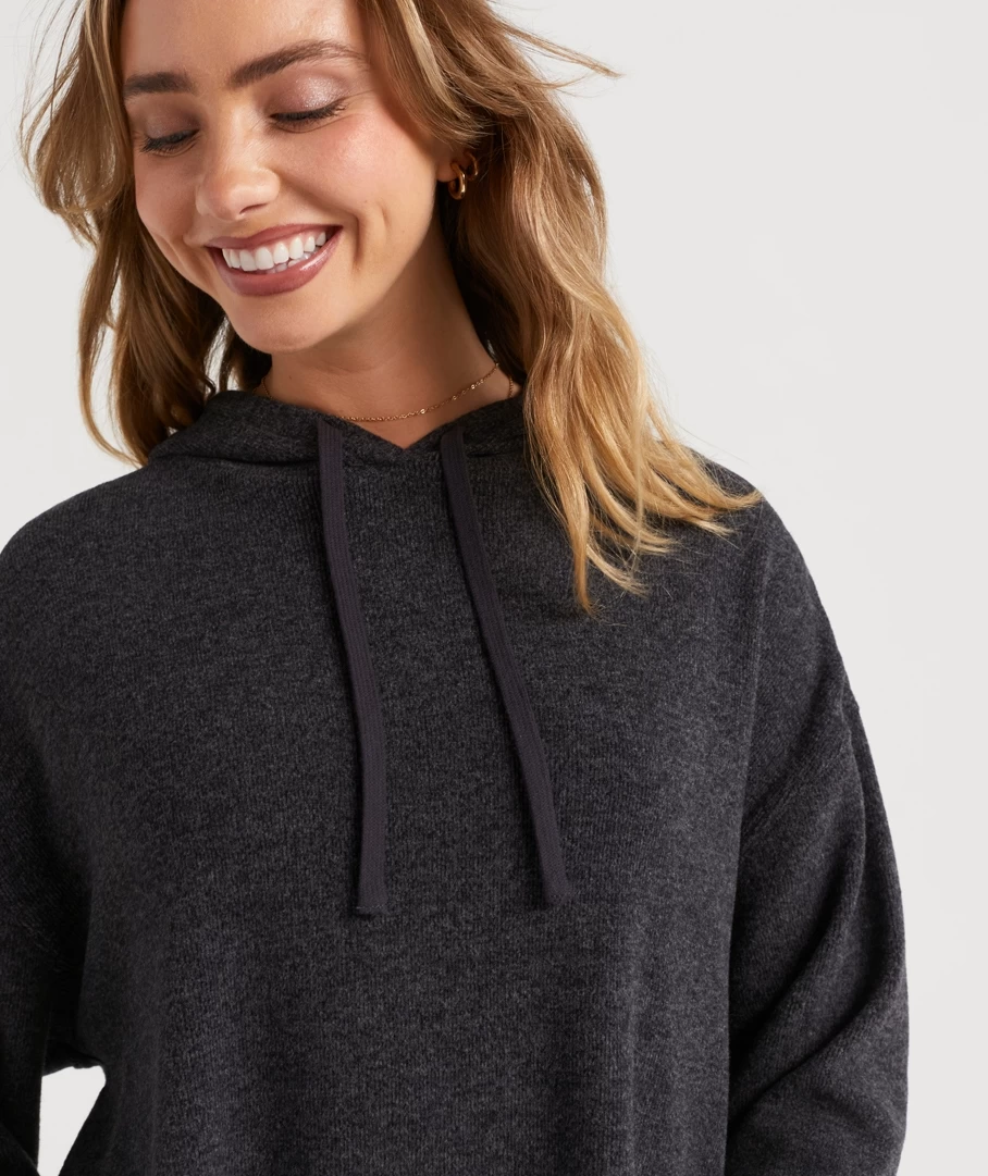 Lounge in these new Soft Rib Hoodies. Made in soft fabric and available in black colours. Pair with matching Soft Rib Wide Leg Pant or denim bottoms to complete your look.