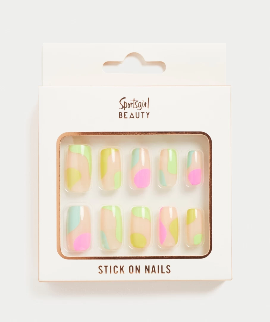 These stick on nail will give you instant glam. This pack of 24 stick on nails feature a square shape and neon colour.