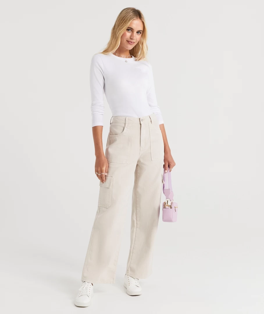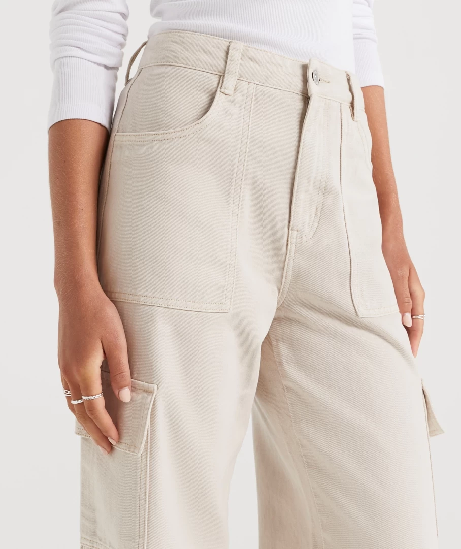 The Cargo Jean are a must have! A loose high rise fit, with a baggy shape and side pockets. These will be your new fave staple all season.