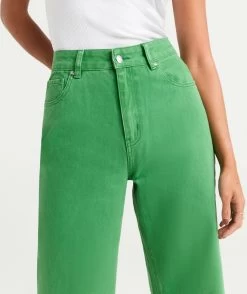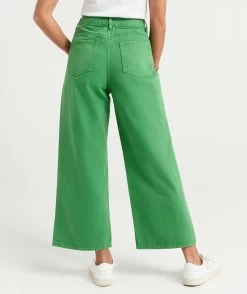 For a relaxed fit, The Culotte Jeans are the perfect pick. Made with 100% cotton, high waisted, fitted at the hips, wide leg fit, cropped length, 5 pockets, stitched hemline and trendy green colour.