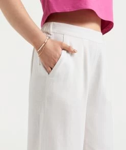 The Linen Culottes Pants are sure to become a staple item. Made with a linen blend, cropped length, flat front waistband, side pockets, wide leg throughout and white colour. Add some new slides and you are set.