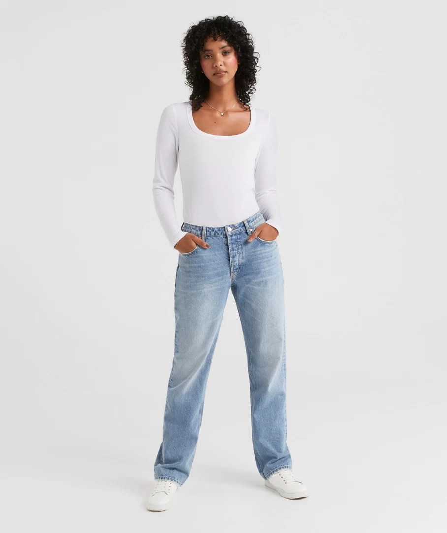 The Low Rise Straight Jean will be your new fave! With the 2000s inspired low rise fit, relaxed through the leg and full length. Pair with a baby tee for your next everyday outfit.