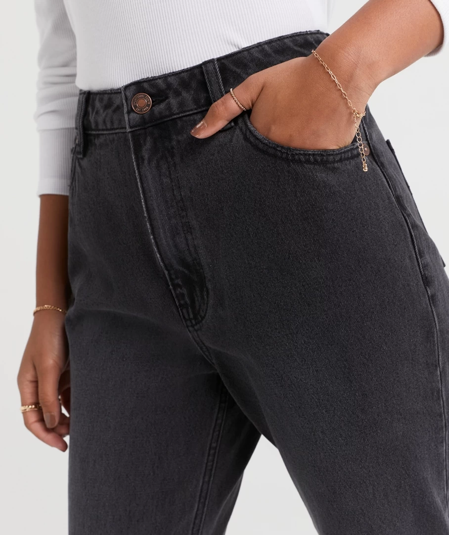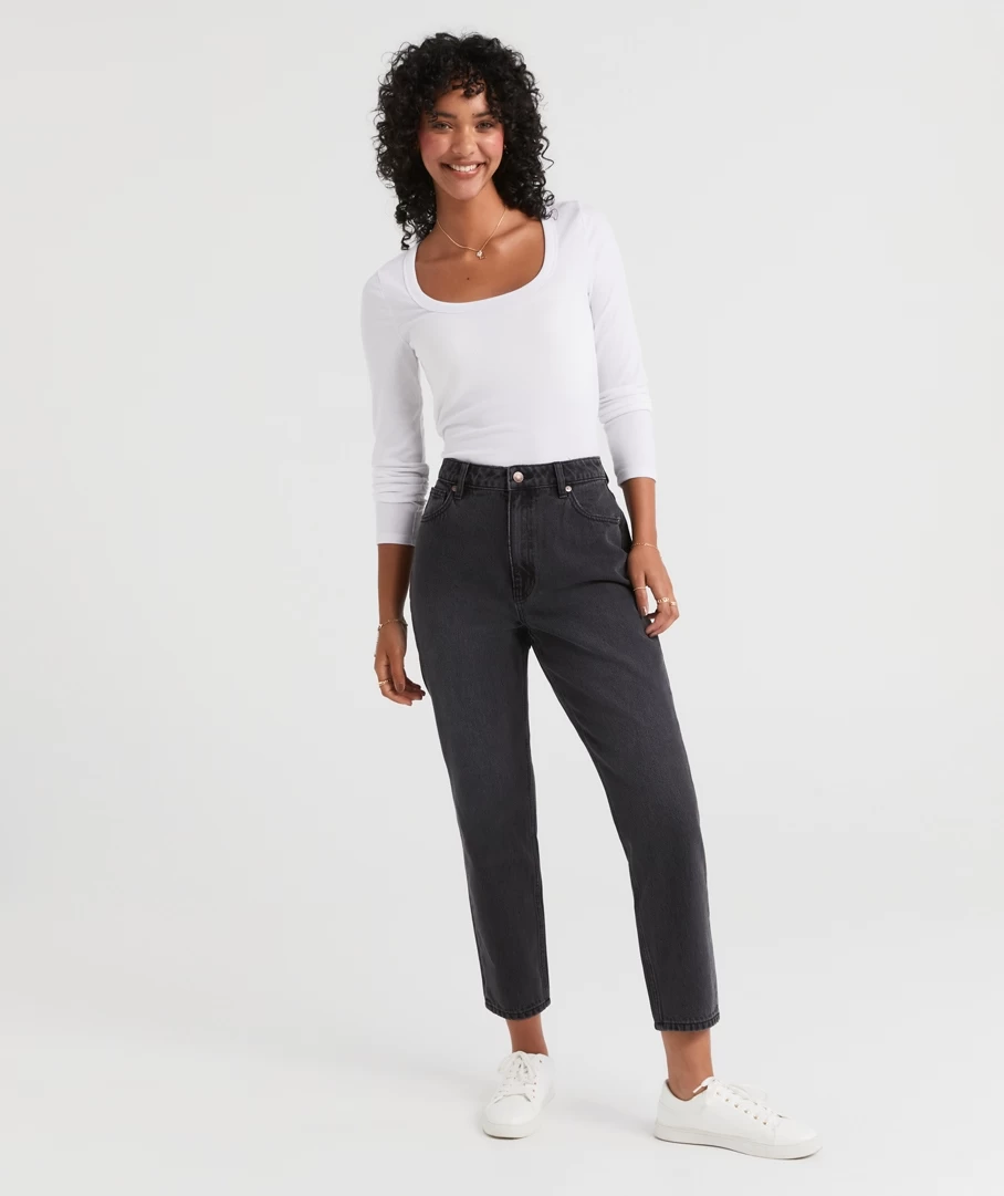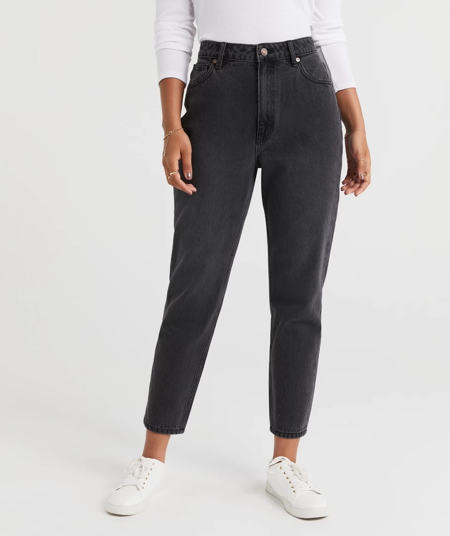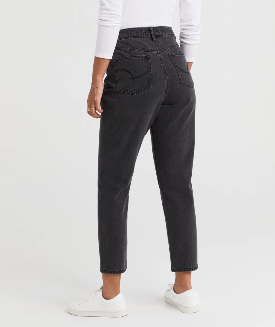 The Mom Jean is a classic wardrobe essential. A slightly loose fit, high waisted, tapered to the ankle and made from 100% cotton. For a classic look, pair with sneakers and a T-shirt.