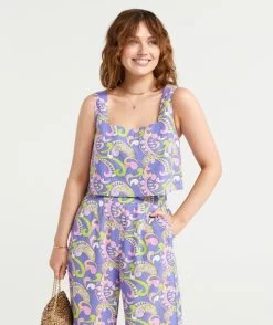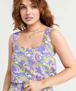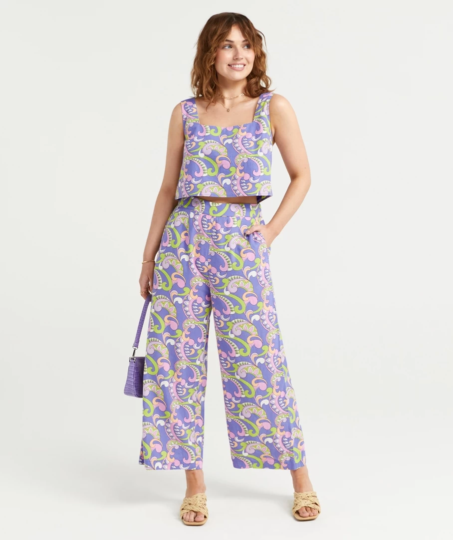 Its all about the print with The Printed Linen Square Neck Cami. With a stunning purple paisley print, it is sure to stand out. Made with a linen blend, square neckline, cropped length, wide straps and double layered. Pair with its matching linen culottes for the ultimate set. Add some jewellery to elevate your look.