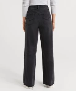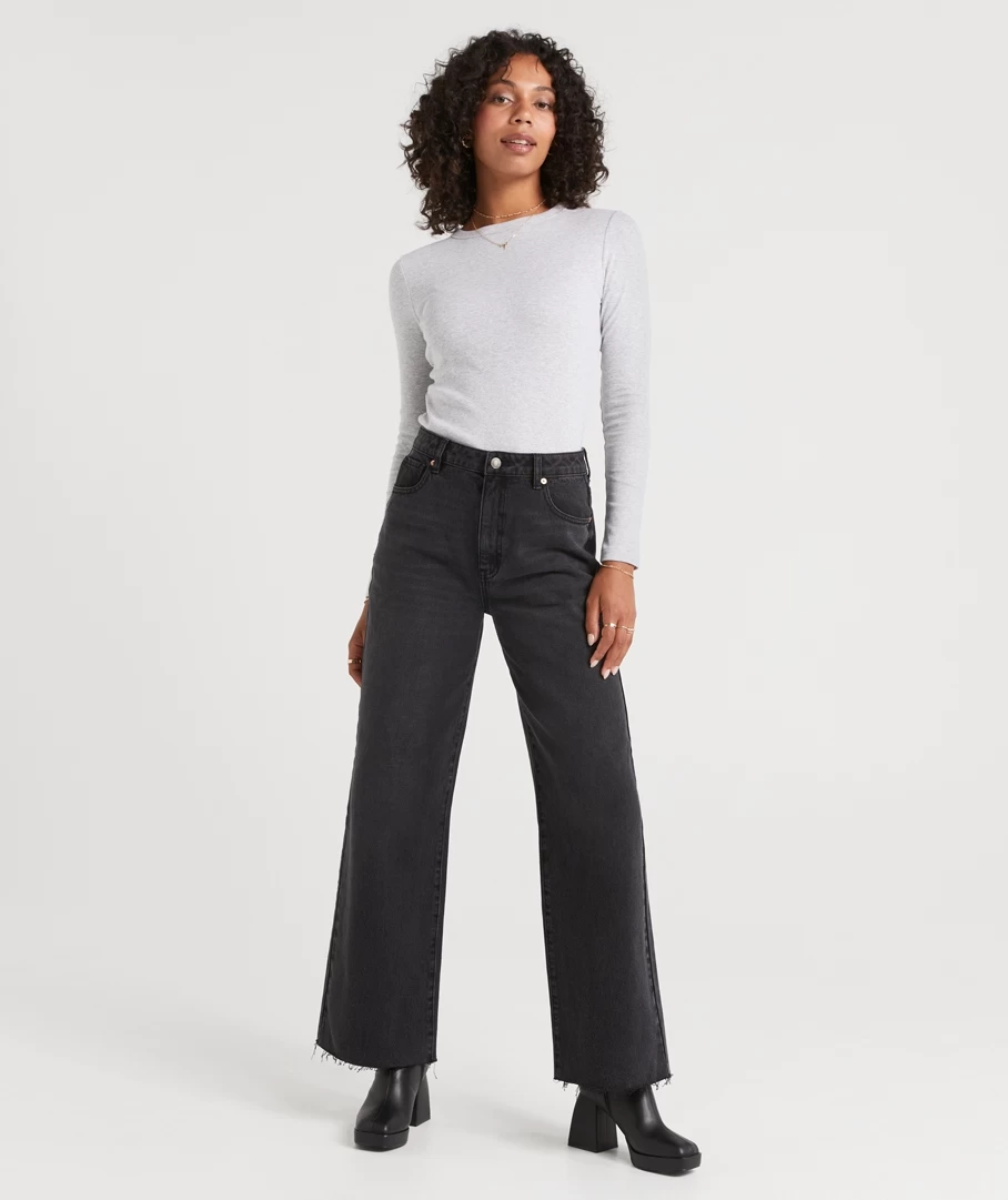 The Wide Leg Jeans are the go-anywhere style. With 100% cotton, rigid fit, high waist, slim fit through the waist, with a relaxed fit from the thigh down. Pair with a basic tee for a casual look.