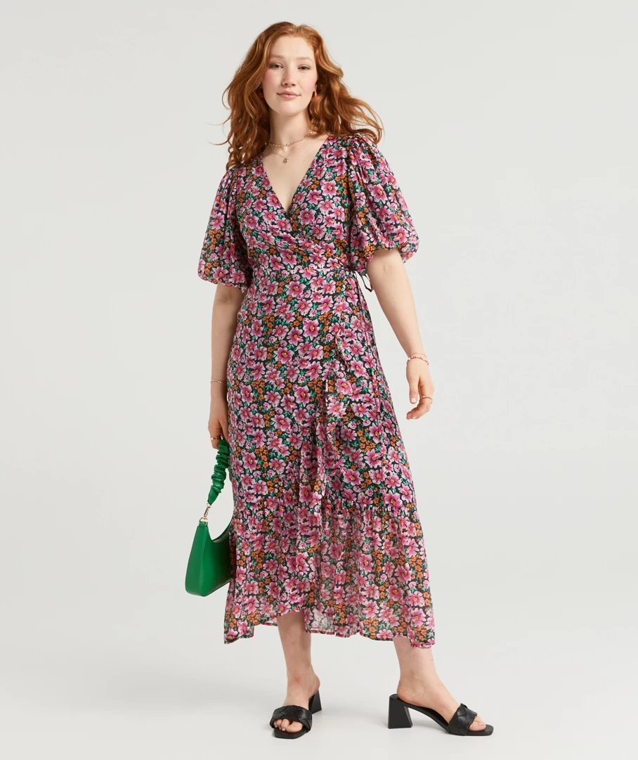 Stun at your next event with the Vera Wrap Midi Dress. With a pretty floral print, midi length, wrap closure, short puff sleeves and ruffle detail. Add some new heels and you are set.