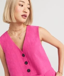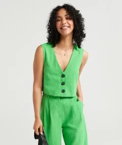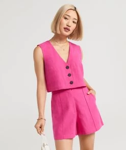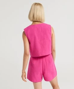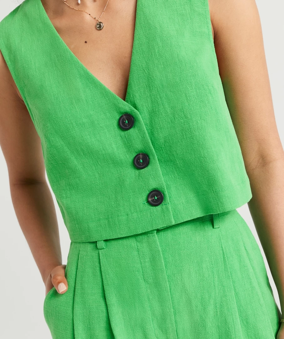 We are obsessed with the Vicky Button Through Vest and you will be too! With a textured feel all over in a ramie/cotton blend, cropped length, sleeveless, V neckline, front buttons and trendy block colours. Pair it with its matching Textured Shorts or Pants for the ultimate summer set. Add some new slides and you are set.