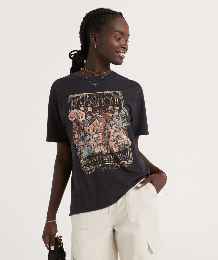 A perfect statement graphic tee to add to your collection, the Vintage Floral Graphic T-Shirt. Made with 100% cotton, short sleeves, full length, oversized fit in a slate shade. Style with your fave sunglasses to add some edge to your outfit.
