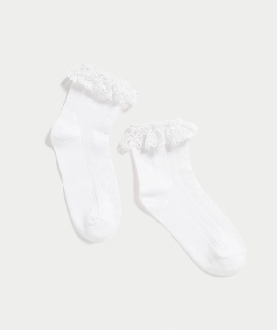 The Crochet Sock in white features all over pattern with crochet frill trim.