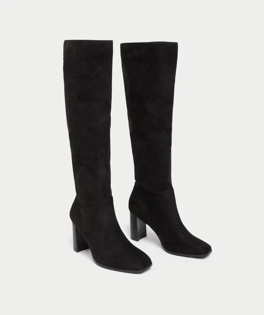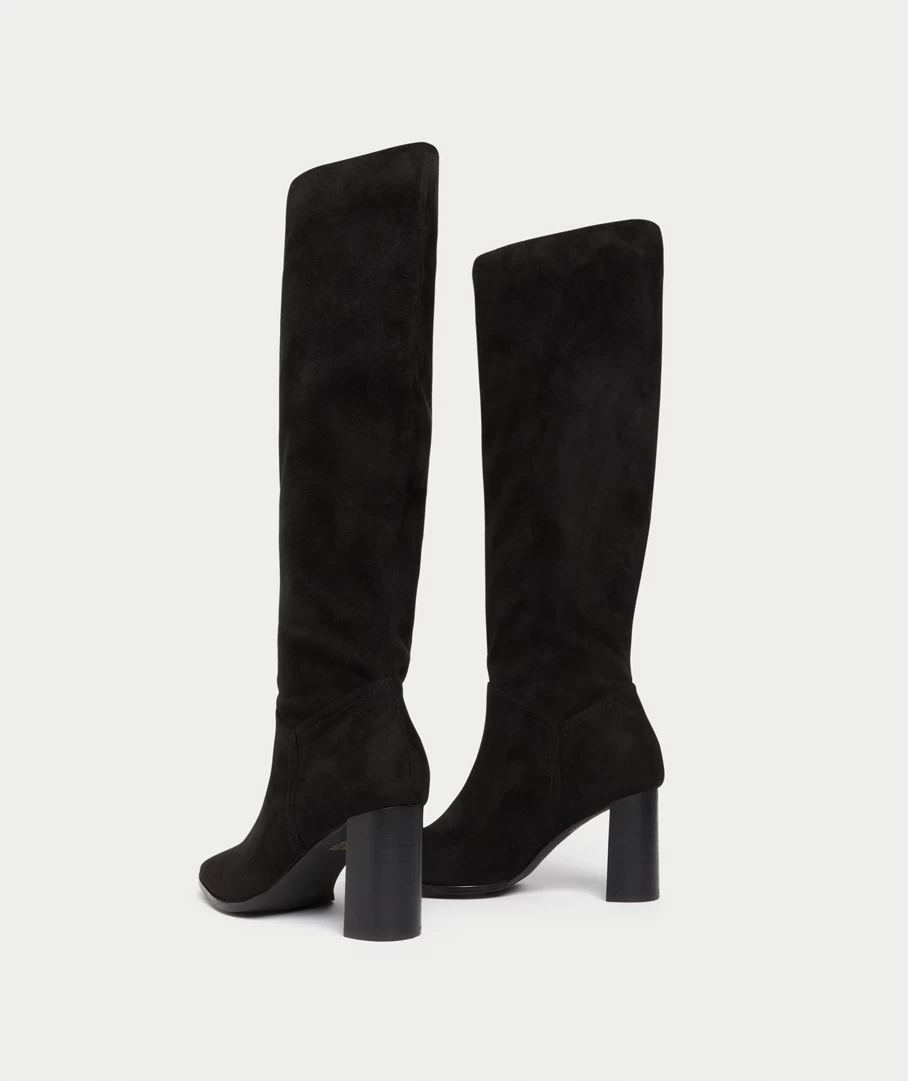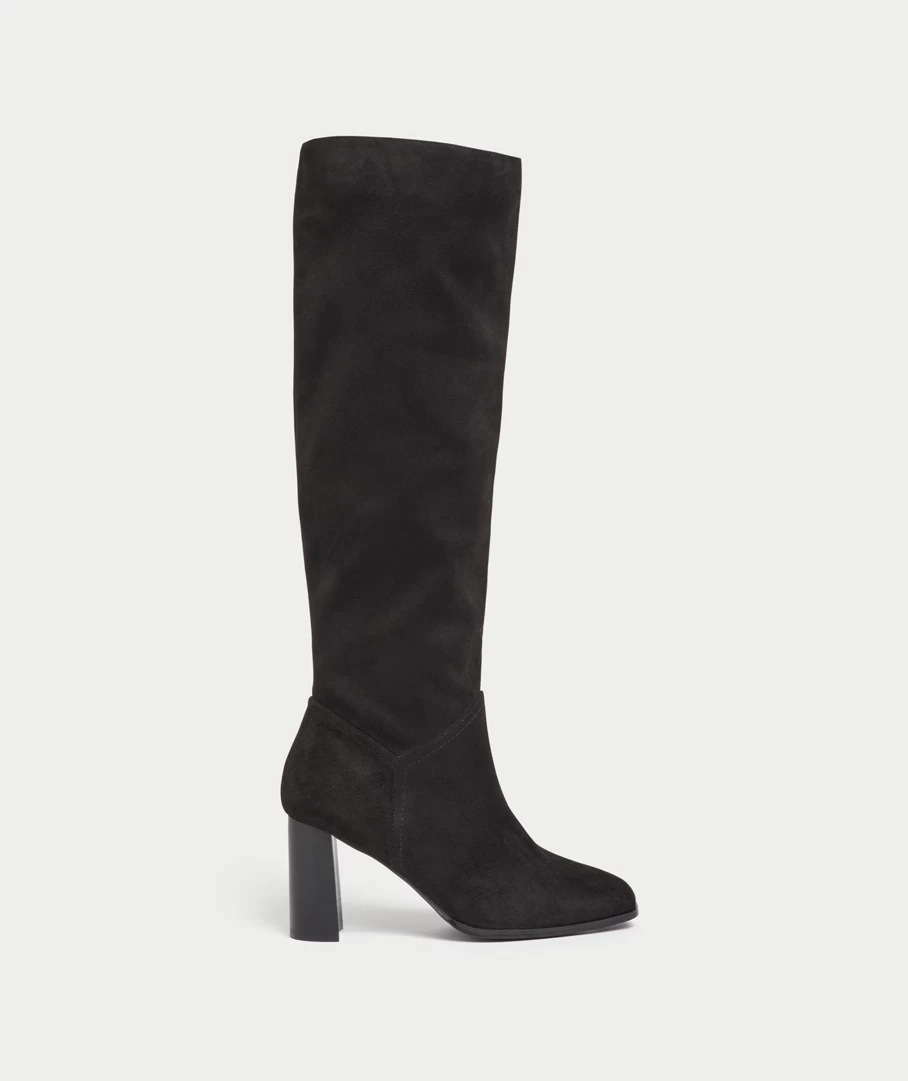 An essential piece to add to your capsule wardrobe, the Zoe High Knee Scrunch Boots. Made with a micro suede and PU. This boot features a 7cm block heel. The perfect boots to take you from day to night!